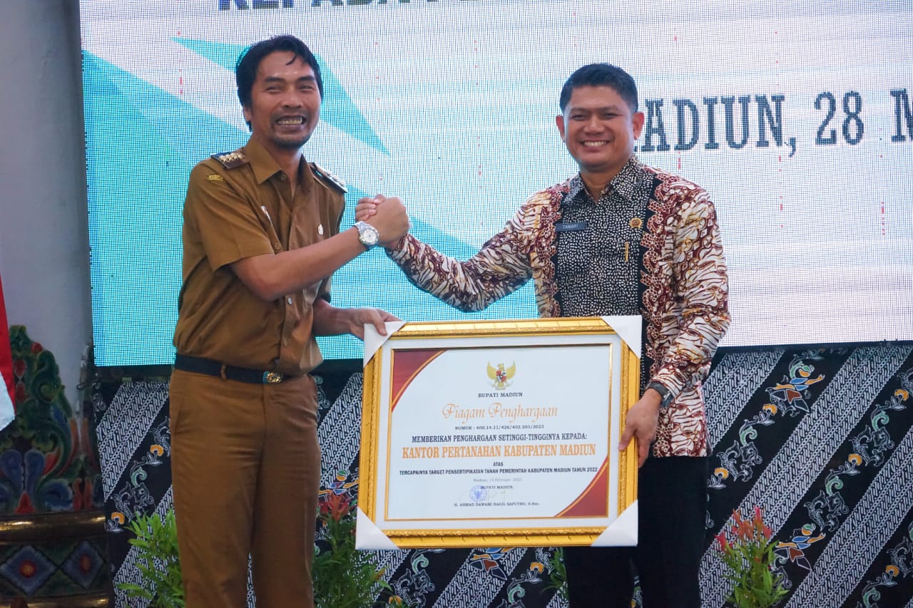 (ATR/BPN), Hadi Tjahjanto kepada Bupati Madiun Ahmad Dawami di Pendopo Muda